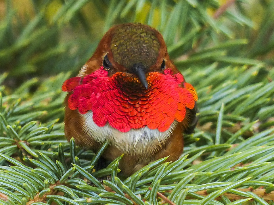 These hummingbirds are highly territorial, especially around food sources, and will aggressively defend their feeding areas from other birds.