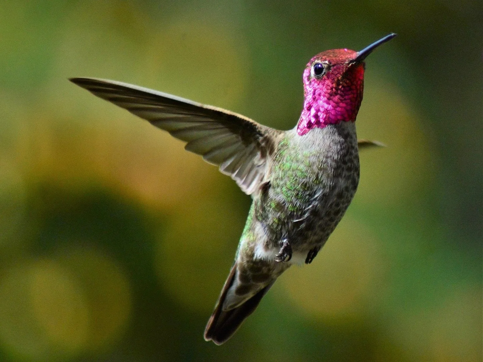 Anna’s Hummingbirds are known for their vibrant, fuchsia-colored throats and bright, emerald-green backs.
