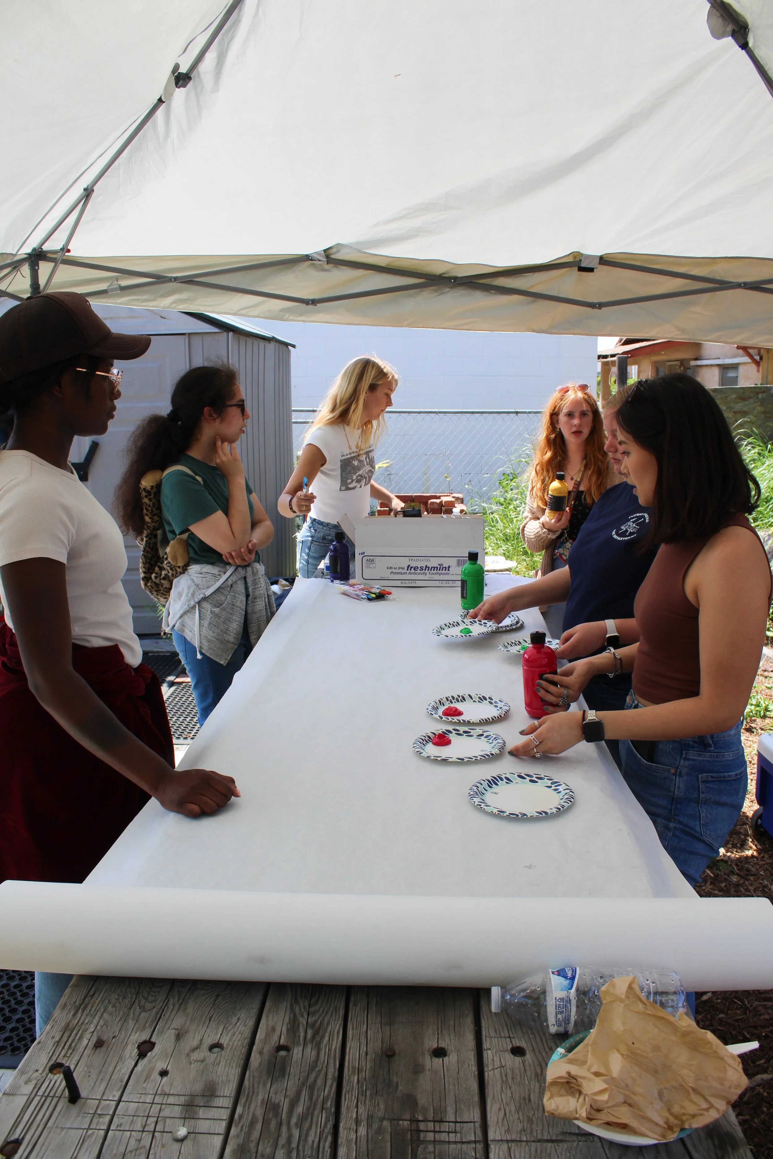A key part of the event were the giveways included in every station! As highlighted above, many guests artistically designed their pots and bookmarks. We also had a raffle with prizes from our staff and partners, screen printing a design prepared by one of our Young Environmental Justice Advocates on tote bags and shirts that guests brought, various flyers on mental health tips, locations on health resources, small bags of lavendar and more!